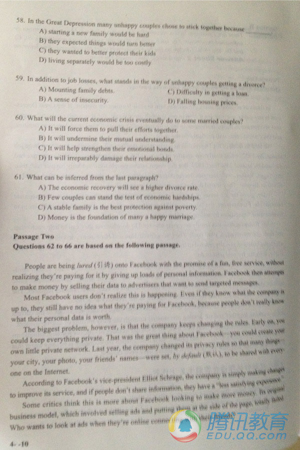 2019年12月大学英语四级真题试卷及答案(第二套)