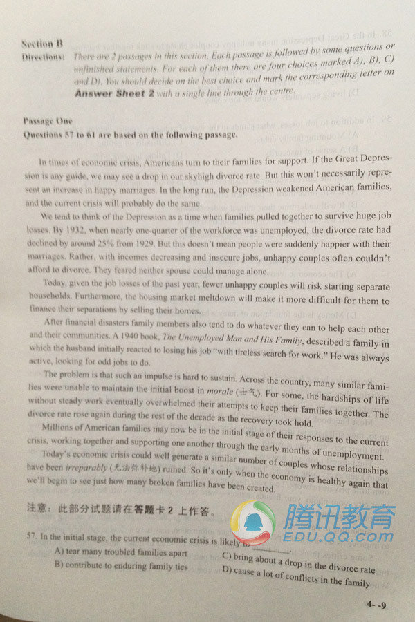 2019年12月大学英语四级真题试卷及答案(第二套)