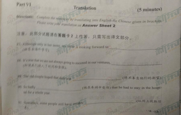 2013年6月大学英语四级考试真题试卷(图片版)