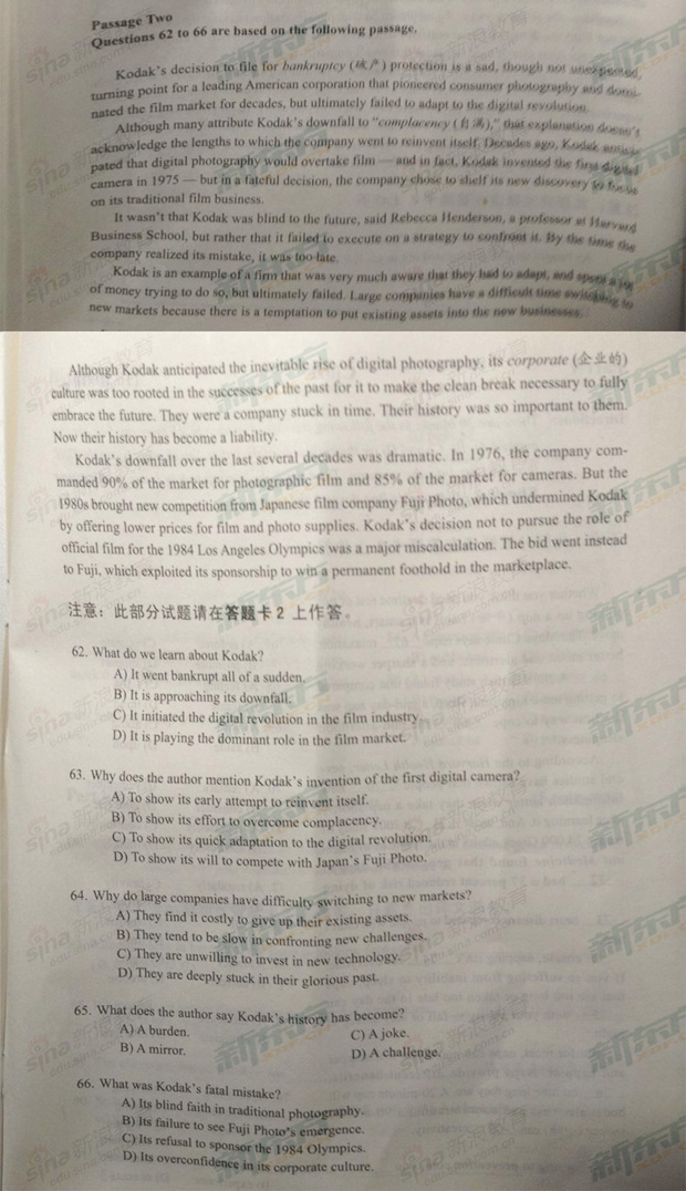 2019年12月大学英语四级真题试卷及答案(第二套)