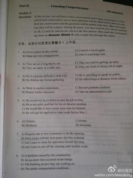 2019年12月大学英语四级真题试卷及答案(第二套)