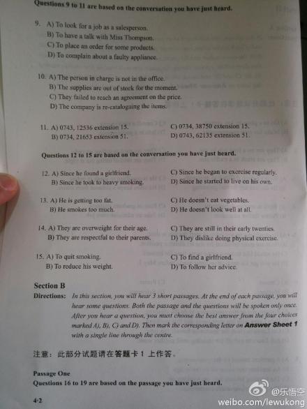 2019年12月大学英语四级真题试卷及答案(第二套)