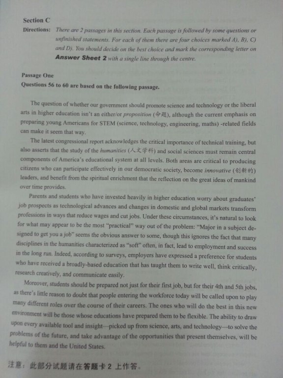 2014年6月英语四级真题原文完整版(图片版)