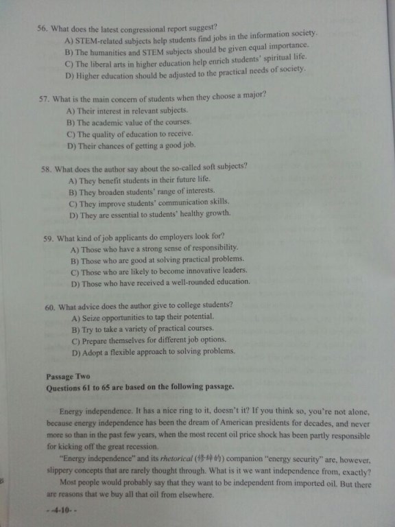 2019年12月大学英语四级真题试卷及答案(第二套)