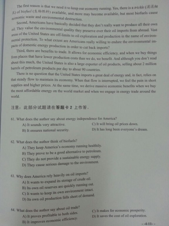2019年6月大学英语四级真题试卷及答案(第三套)