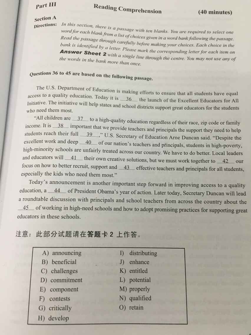 2019年6月大学英语四级真题试卷及答案(第三套)