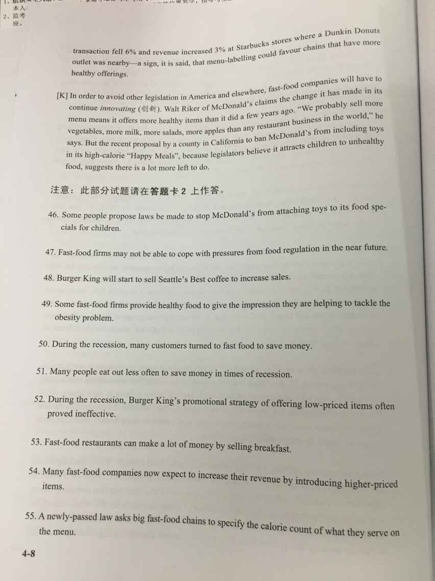 2015年6月大学英语四级真题试卷二(图片版)