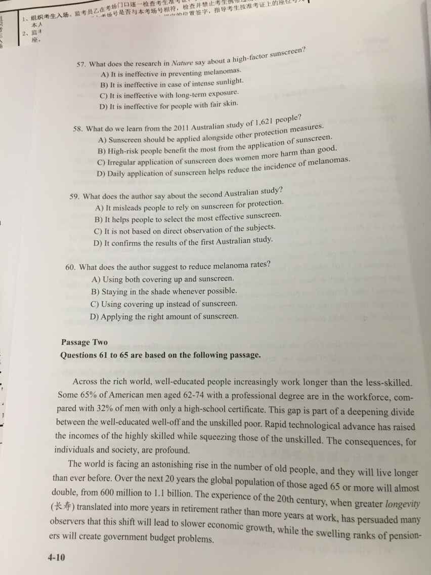 2019年12月大学英语四级真题试卷及答案(第二套)