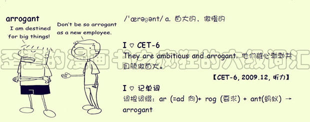 【联想记单词】词根词缀:ar-(=ad 向)+rog(要求)+-ant(蚂蚁)→arrogant
