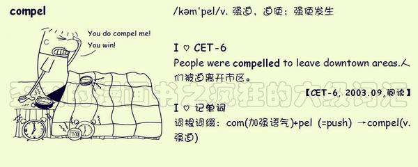 【联想记单词】词根词缀:com(加强语气)+pel (=push)→compel(v.强迫)