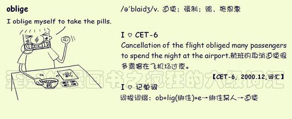 【联想记单词】词根词缀:ob+lig(绑住)+e→绑住某人→迫使