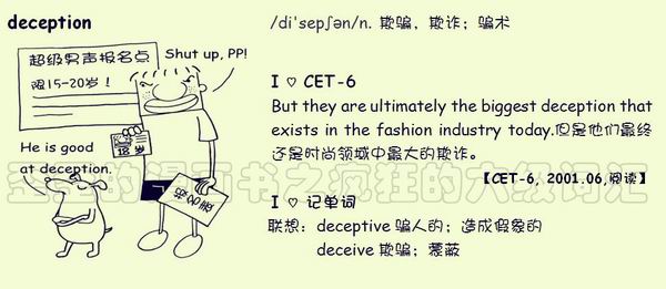 【联想记单词】联想:deceptive 骗人的;造成假象的
