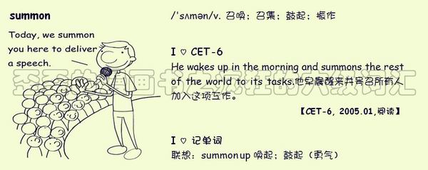 【联想记单词】联想:summon up 唤起;鼓起(勇气)