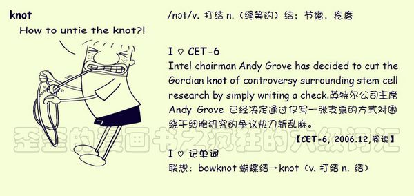 【联想记单词】联想:bowknot 蝴蝶结→knot(v.打结 n.结)