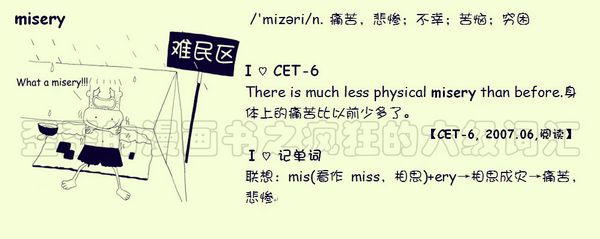 misery n.痛苦,悲痛;不幸;苦恼;穷困