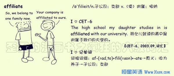 affiliate n.子公司;支部 v.(使)附属;接纳