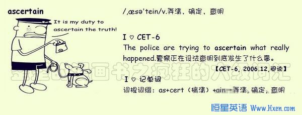 【联想记单词】词根词缀:as+cert (搞清)+ain→弄清,确定,查明