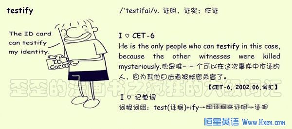 【联想记单词】词根词缀:test(证据)+ify→用证据来证明→证明