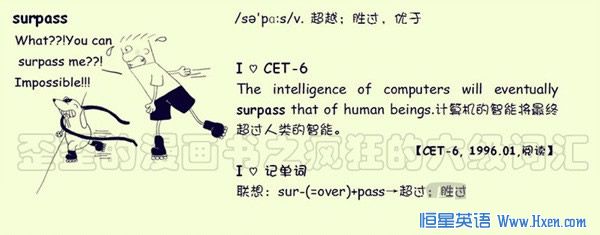 【联想记单词】联想:sur-(=over)+pass→超过;胜过