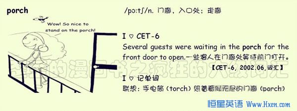 【联想记单词】联想:手电筒(torch)照着看似无尽的门廊(porch)