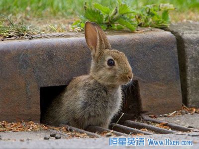 独辟蹊径,一只小野兔和一只鼪鼠巧妙的利用地下排水通道过街。
