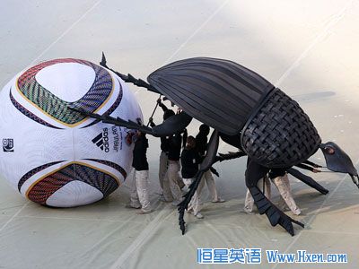 这种甲虫由于肥沃了南非的土壤而倍受尊敬,现在它带领着1000名舞者在足球场上炫耀它的带球技巧。