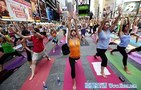 美国千人集体练瑜伽迎夏至