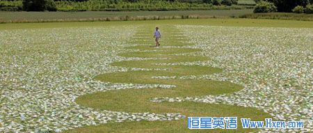 近日,在英国威尔特郡,艺术家布鲁斯·芒罗用近一百万张从世界各地搜集到的废弃光盘创作了一副巨大作品。整个作品看起来就像一个内陆海洋,闪闪发光。