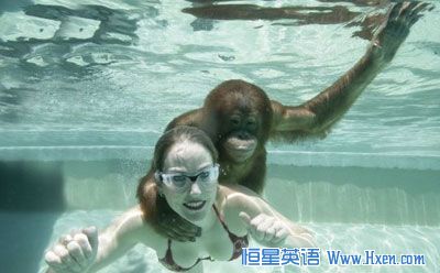 然而30岁的Moksha Bybee在炎夏中迎来了她最最特殊的游泳搭档--一只年仅7岁的红毛猩猩。