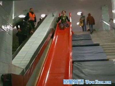 Recently, a giant red slide has been installed in place of stairs at a Berlin subway to give fun-loving commuters a 'fast lane' to their train.
