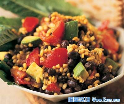 大麦粒 黑豆和鳄梨的组合沙拉