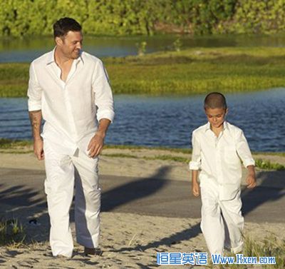 准新郎官:梅根·福克斯的新郎官Austin Green和儿子Kassius穿着简洁白色的阿玛尼衬衣,相比起穿着隆重的新娘来说,这两位算是看起来十分低调的了。