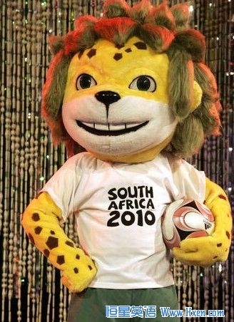 2010年世界杯吉祥物--豹子扎库米。豹子“扎库米”名字中头两个字母“ZA”是“南非”的缩写;后面的字母“KUMI”在许多非洲语言中的意思都是“10”,意味着南非世界杯举办的年份——同时,这也是大部分顶尖足球运动员身披的球衣号码。