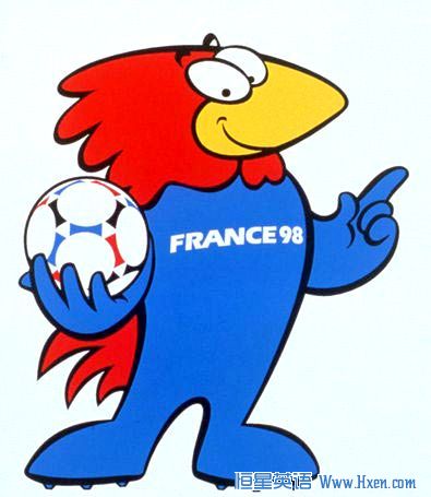 1998年,一只名叫福蒂克斯的人状欢呼跳跃的小公鸡,成为了正在激烈进行中的法国世界杯的吉祥物。这个由18500名投票者中47%的人为之命名的小公鸡,寓意足球像太阳一样照耀大地。