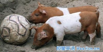 其他动物园也都陷入了世界杯的疯狂。柏林动物园在7月11号第一场开赛前就让两只小猪先赛上了。