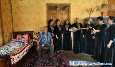 让我们开始庆祝生日吧:一群本地的民间乐队为老人演奏传统乐曲,老人的70岁儿子Mikhail 也在其中呢。