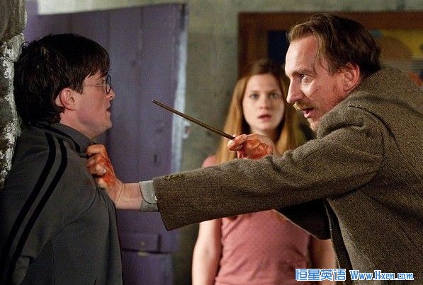 Coming to blows: Harry and his former teacher, Professor Remus Lupin (David Thewlis) share a heated moment as a shocked Ginny (Bonnie Wright) looks on