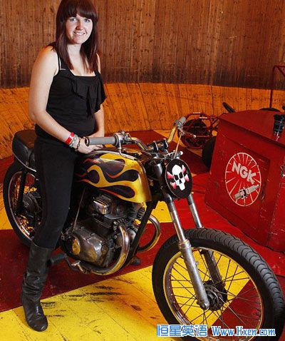 资料图 英国女车手挑战"死亡之墙"不戴头盔