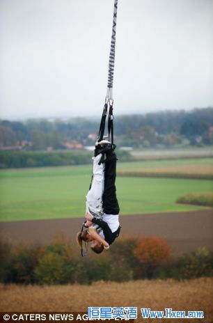 新人挑战蹦极婚礼 倒挂空中拥吻示爱