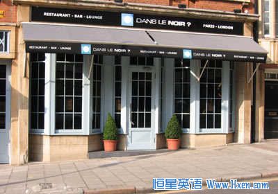 在伦敦市金融区有一家名为“在黑暗中?”的餐厅,所有服务员均为盲人,能够容纳60人的就餐区域一片漆黑,伸手不见五指,客人进入就餐前需将手机、手表等可能光源寄存在前台。这家餐厅来自于法国,2004年在巴黎开了第一家店。进入该餐厅的客人先在一个有照明的吧台选择菜单,有鱼、肉和蔬菜三种,但是菜单包含的具体菜品以及就餐过程中提供的鸡尾酒的配料在就餐前一律保密。之后,客人可以将手放在盲人服务员的肩膀上,跟随其进入就餐区,在一张大桌旁就座。就餐过程中,如何将食物送到嘴里、如何判断酒杯是否倒满等都是客人们面临的全新体验。这个时候,暂时将餐桌礼仪抛开,用手吃东西,用手指感觉酒杯的深浅以及跟邻座的陌生人交谈都会是有趣的体验。用餐结束后,客人会被带回到点菜的吧台,所有食用的菜品会在这个时候全部揭晓。