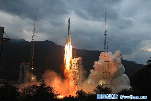 At 6:59:57 pm, the satellite blasted off on a Long March 3C carrier rocket from No 2 launch tower at the Xichang Satellite Launch Center in southwest China's Sichuan Province.