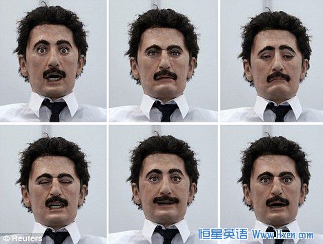 由66家高科技公司研发的机器人日前齐聚在台北世贸中心举办的“2010台北国际机器人展”。据悉,该展览于19日开始,将持续4天。上图中的无名机器人可以模仿人类表情:惊奇、生气、悲伤以及高兴。