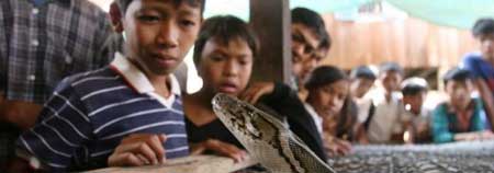 资料图:柬埔寨两只蟒蛇大婚 百名来宾庆婚礼