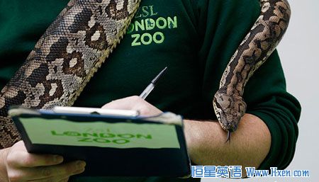 1月4日,英国伦敦动物园一年一度的“人口普查”开始了,工作人员正在清点园内新到的动物。该动物园共有16000种不同种类的生物。