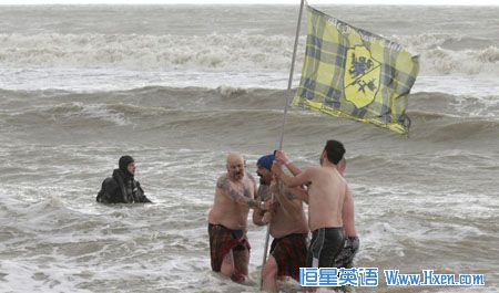 1月8日,在比利时海边城市,六千名勇敢者穿着“怪物服”跳进海水中参加一年一度的赶海日。