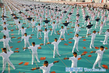 资料图:6000印度学生齐演瑜伽