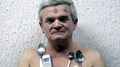 现年67岁的米洛斯拉夫·曼迪科与妻子生活在塞尔维亚的思曼诺维奇,可以把硬币、刀叉和任何金属制品像磁铁一样牢牢吸附在身体的各个部位,他的这种特异功能让医生们困惑不已。