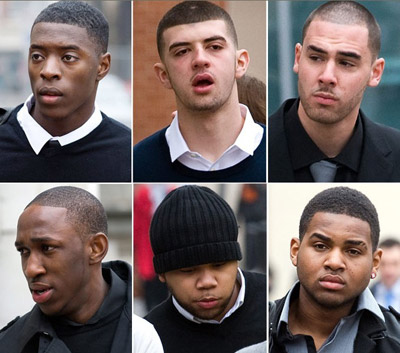 Courtney Amos, 19, Ashley Charles, 20, Dennis De Sousa, 18, Jahson Downes, 20, Jahvon Edwards, 19 and Luke Farrugia, 21, all admitted rape of a girl under the age of 13.