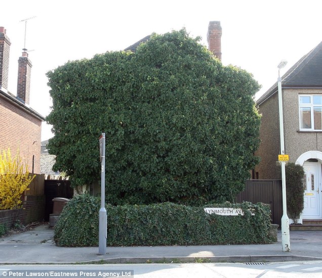 A house in Essex is smothered in the ivy so much that those who have been inside say you can't see out of the windows. According to a source at the estate agency, the ivy had grown unchecked for 20 years and there is even a tree growing in the dining room. Its condition means the 1920s property is on the market with a price less than half that of neighboring homes.