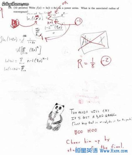 The panda will cry, if I get a bad grade.没考好熊猫会伤心的~